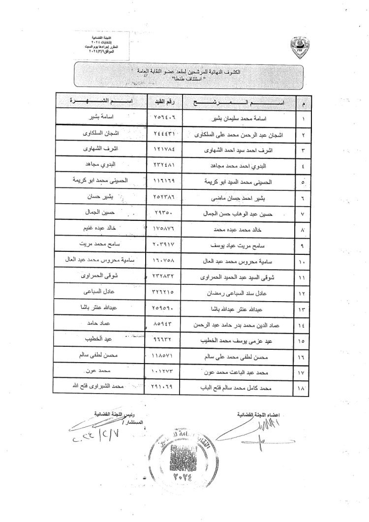 إعلان الكشوف النهائية للمرشحين على منصب النقيب العام للمحامين ومناصب العضوية