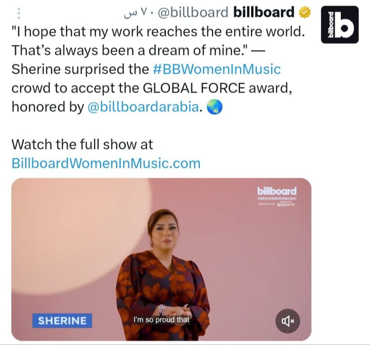 شيرين عبدالوهاب تحصل على جائزة التأثير العالمي من منصة بيلبورد العالمية