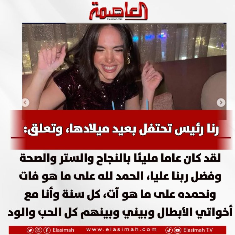 ونشرت رنا رئيس صورًا من احتفالها عبر حساباتها على «إنستجرام» و«فيسبوك»، معلقة:«لقد كان عامًا مليئًا بالنجاح والستر والصحة، وفضل ربنا عليا، الحمد لله على ما هو فات ونحمده على ما هو آت. كل سنة وأنا مع أخواتي الأبطال وبيني وبينهم كل الحب والود».