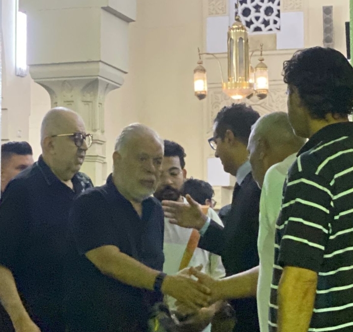 أشرف زكي في أول ظهور له بعد الاستقالة من نقابة المهن التمثيلية خلال عزاء والدة حمادة بركات