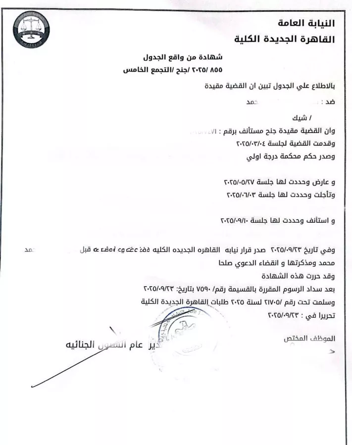 وقضت محكمة القاهرة الجديدة بانقضاء الدعوى بين الطرفين بالتصالح، حيث قدّم كل طرف تنازلات متبادلة شملت إسقاط القضايا المرفوعة داخليًا وخارجيًا، ليتم إنهاء النزاع بشكل نهائي ورسمي.
