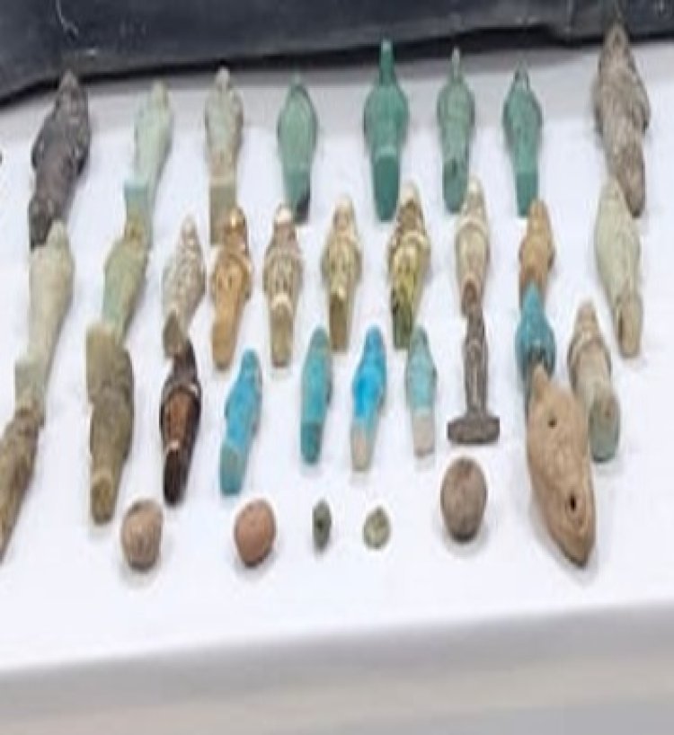 وعقب تقنين الإجراءات تم استهداف المتهم وضبطه، وعُثر بحوزته على 533 قطعة أثرية متنوعة تشمل تماثيل وتمائم وعملات معدنية. وبمواجهته أقر بحيازته للمضبوطات بقصد الاتجار، مشيرًا إلى أنه تحصل عليها من أعمال حفر وتنقيب غير مشروع بإحدى المناطق الأثرية ببني سويف.