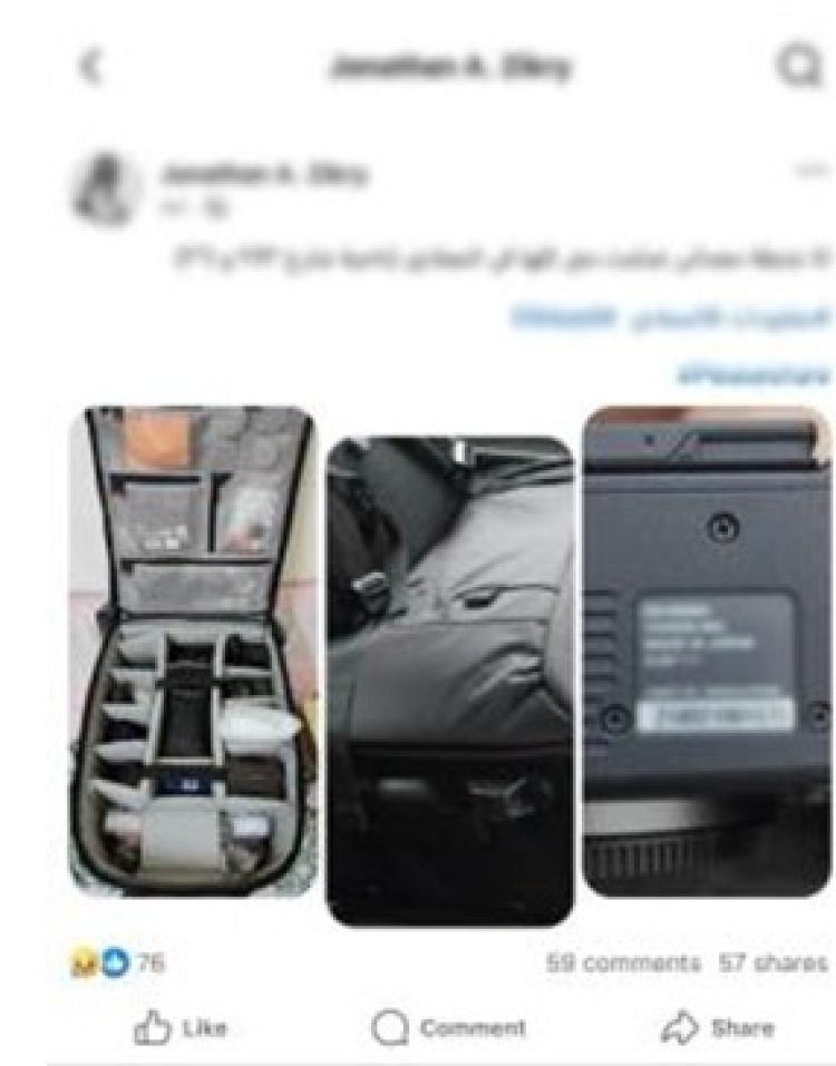 رصدت أجهزة الأمن ، تداول منشور مدعوم بصور بأحد الحسابات الشخصية بمواقع التواصل الإجتماعى تضمن تضرر صاحب الحساب من تعرضه لواقعة سرقة حقيبة بداخلها معدات تصوير كاملة بالقاهرة.