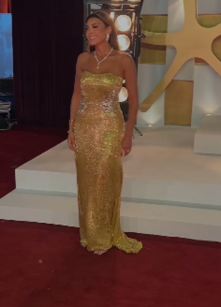 ريهام حجاج تتألق بفستان ذهبي في افتتاح مهرجان الجونة السينمائي