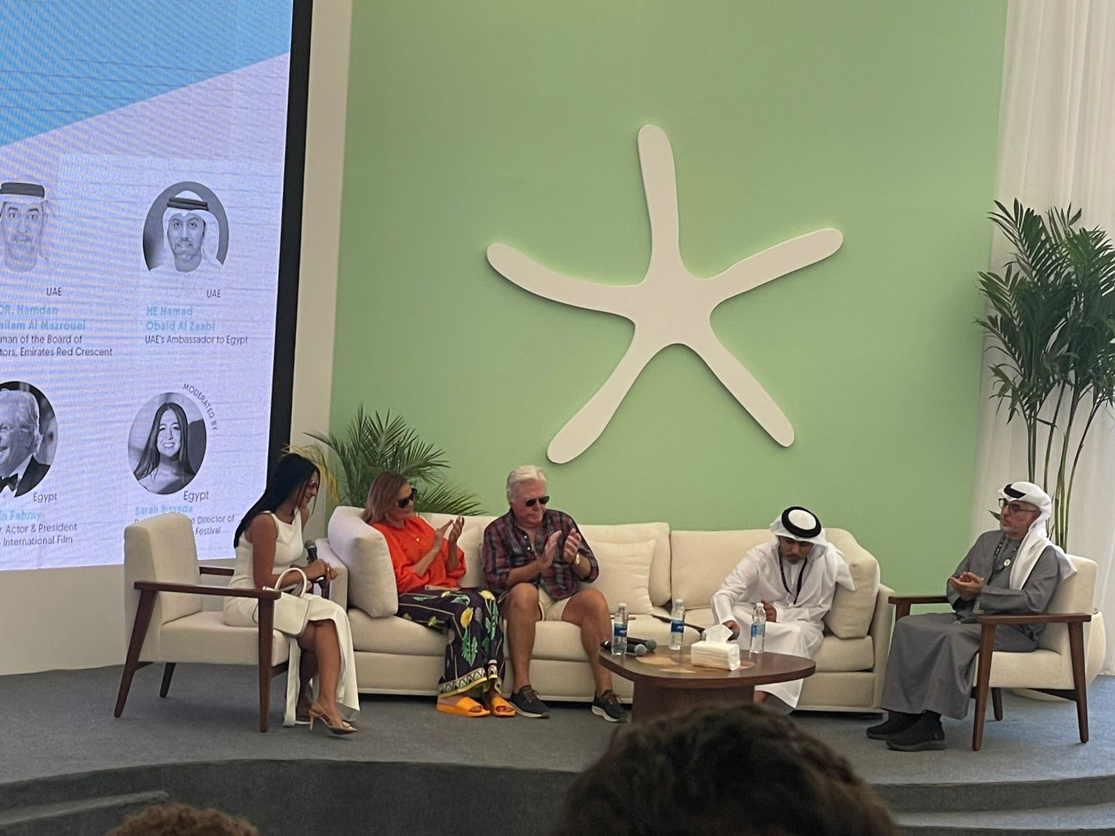 أدار الجلسة الإعلامية سارة بيسادا، وشارك فيها إلى جانب يسرا، كل من حمدان مسلم المزروعي، والسفير حميد عبيد الزعابي، في إطار نقاش عميق حول دور السينما في تعزيز الإنسانية والتأثير الإيجابي في المجتمعات.