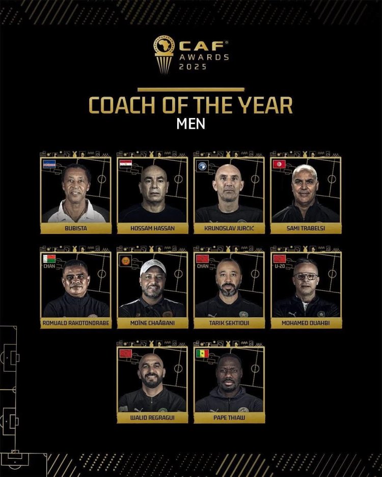 أعلن الاتحاد الأفريقي لكرة القدم قوائم المرشحين لجوائز الأفضل في الكرة الأفريقية عام 2025، والتي شهدت تواجد 11 ممثلا لكرة القدم المصرية، في مقدمتهم المنتخب المصري ومديره الفني حسام حسن وقائده محمد صلاح.