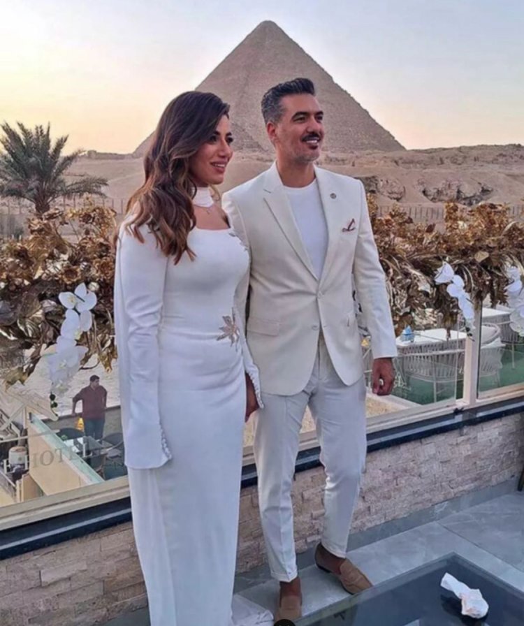 7000 سنة تشهد على عقد قران المطربة هايدي موسى على الإعلامي الرياضي محمد غانم عند سفح الأهرامات