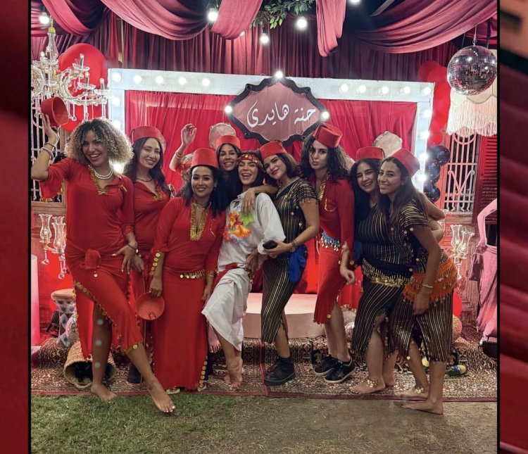 بالطرابيش وبدل الرقص.. هادي الباجوري وهايدي خالد يحتفلان بالحنة في الجونة