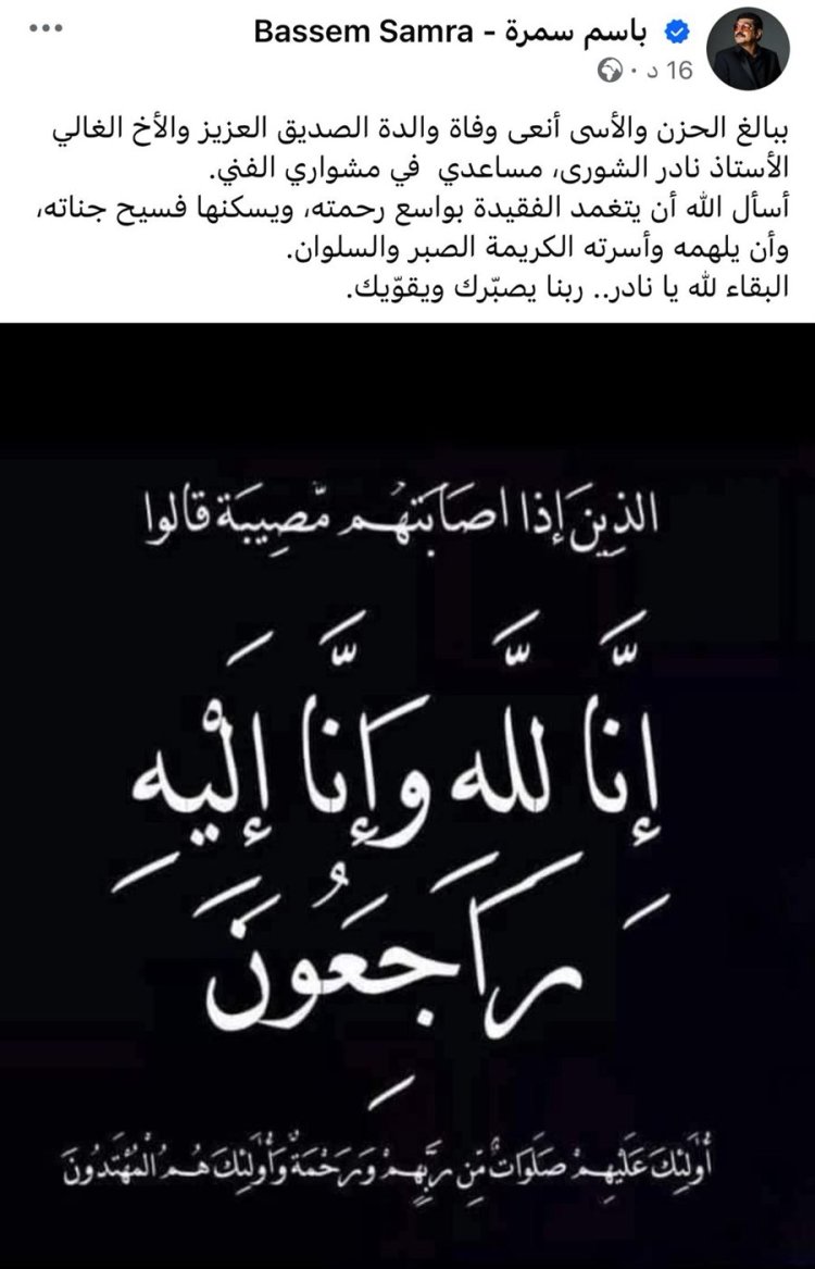 باسم سمرة ينعي والدة مدير أعماله نادر الشوري