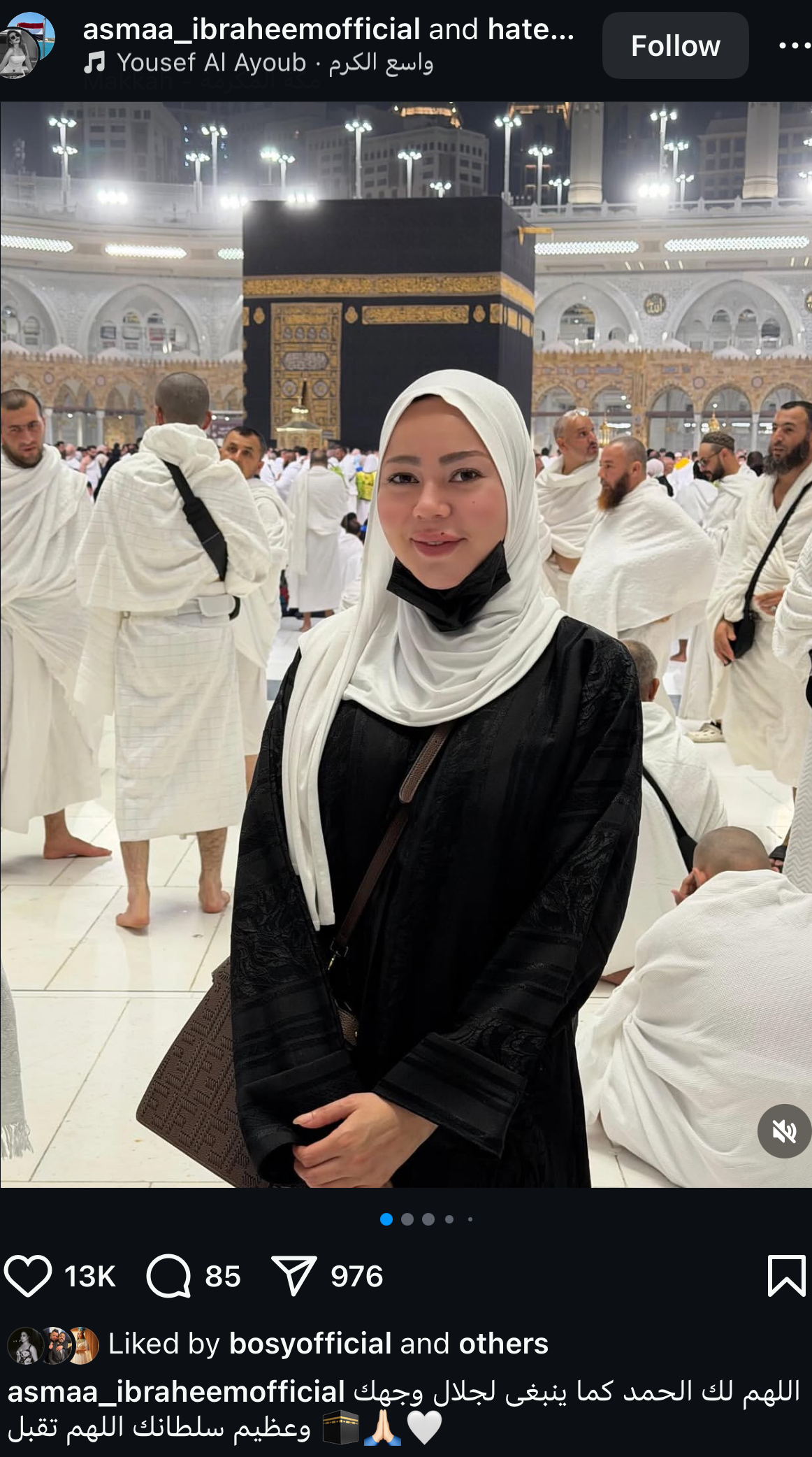 شاركت الإعلامية أسما إبراهيم جمهورها مجموعة من الصور الجديدة عبر حسابها على موقع إنستجرام، وذلك أثناء تواجدها أمام الكعبة المشرفة لأداء مناسك العمرة.