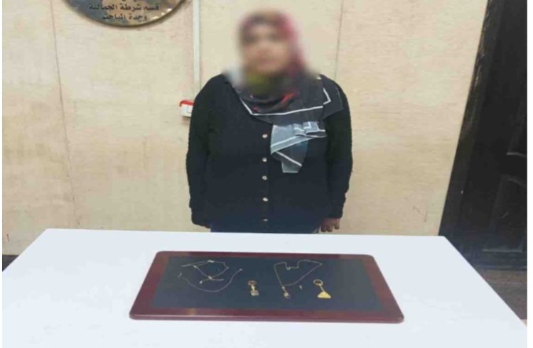 كما تم ضبط إحدى السيدات بدائرة قسم شرطة الجمالية لقيامها بسرقة مشغولات ذهبية من داخل مسكن "محل عملها" بأسلوب "المغافلة" ، وبحوزتها (المشغولات الذهبية المستولى عليها).