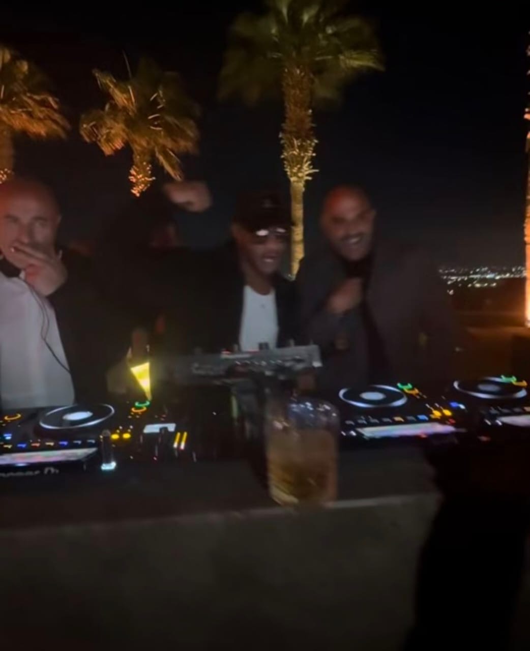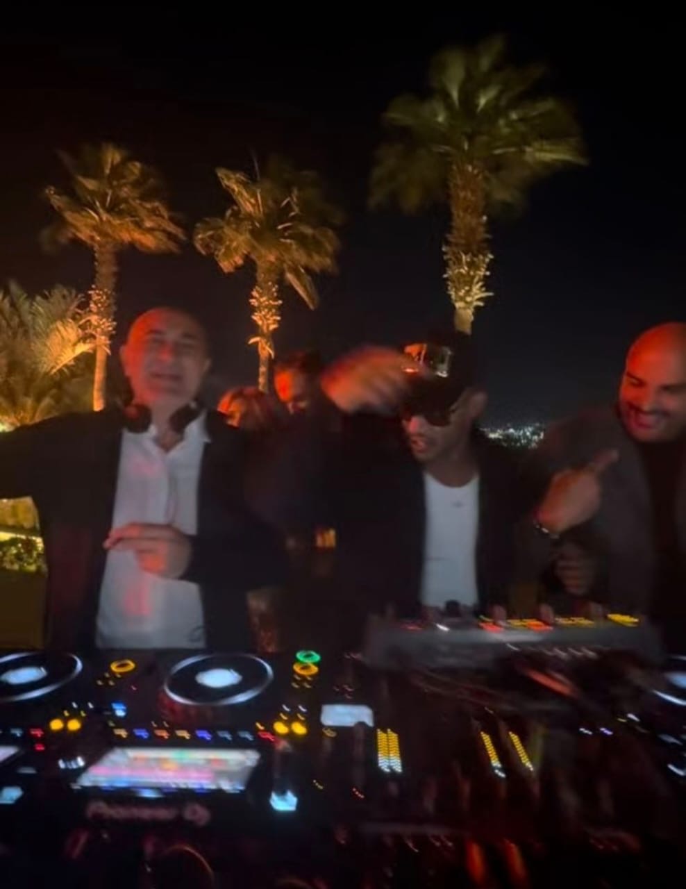 وشهد الحفل حضور نخبة من نجوم الفن والمجتمع، حيث تفاعل محمد رمضان مع الأغاني ووقف على منصة الـDJ وسط الحضور، مرتديًا إطلالة كاجوال مكونة من سترة فوق تي شيرت أبيض اللون، مع قبعة ونظارة شمسية.