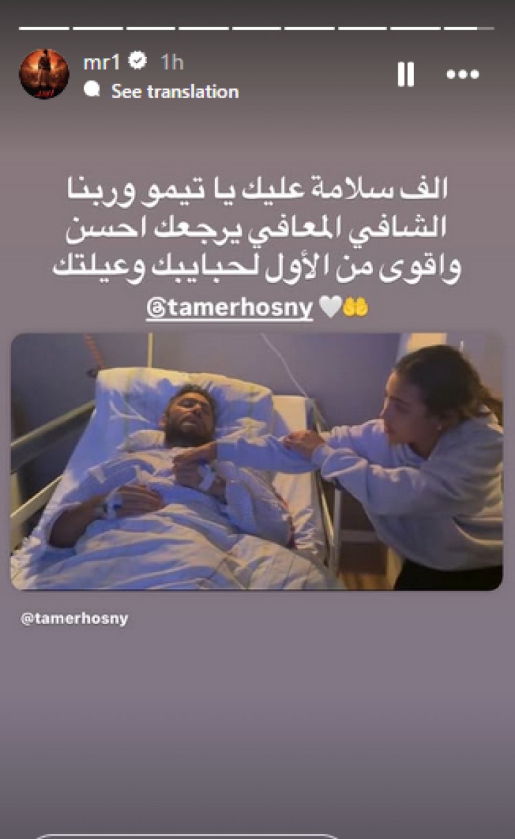 ونشر رمضان عبر حسابه على «إنستجرام»، رسالة قصيرة ضمن خاصية القصص المصورة، قال فيها: «ألف سلامة عليك يا تيمو، وربنا الشافي المعافي يرجعك أحسن وأقوى من الأول لحبايبك وعيلتك»، في لفتة نالت تفاعلًا واسعًا من محبي النجمين.