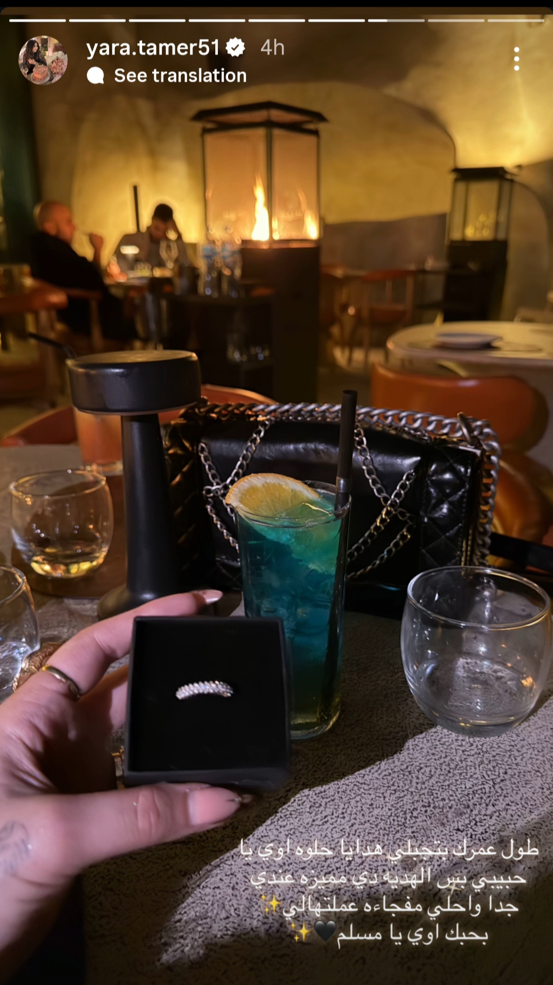بعد عودتهما.. مسلم يهدي زوجته يارا تامر خاتمًا احتفالًا بالعودة