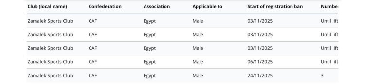 أعلن الاتحاد الدولي لكرة القدم "فيفا" إيقاف قيد نادي الزمالك لمدة 3 فترات متتالية، وذلك وفقًا لما جاء عبر الموقع الرسمي للاتحاد اليوم الإثنين 24 نوفمبر 2025.