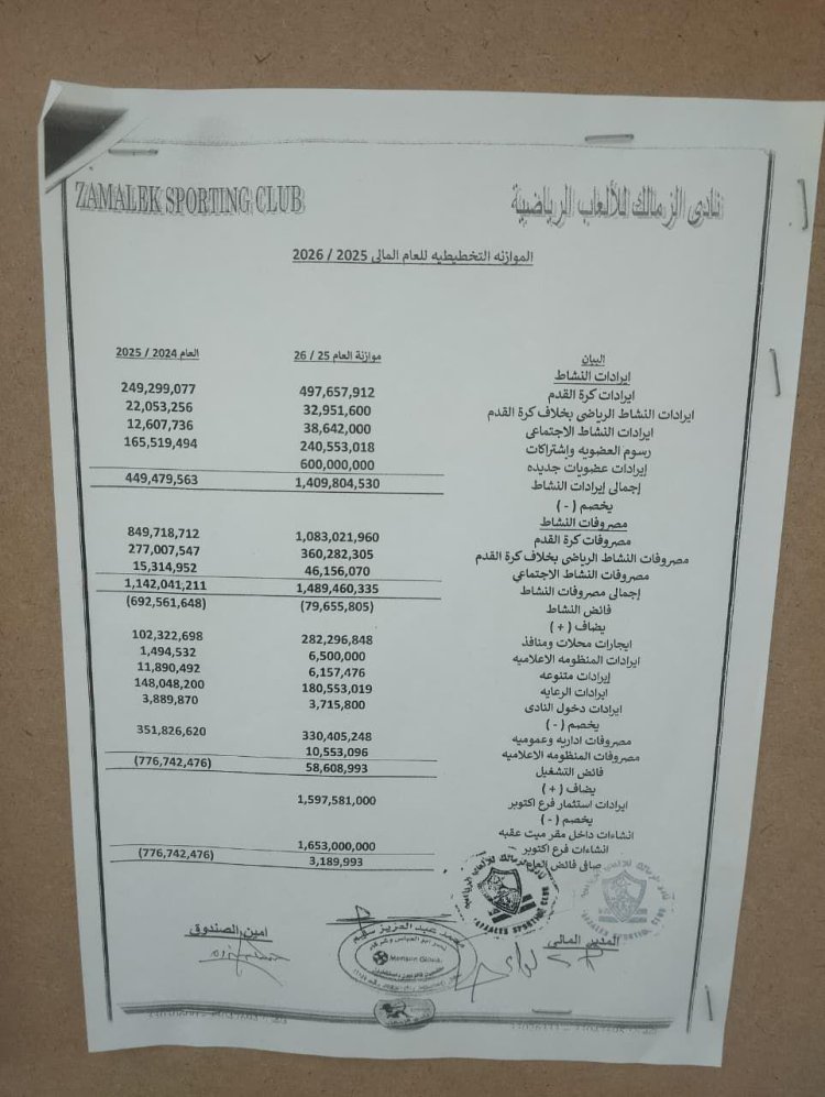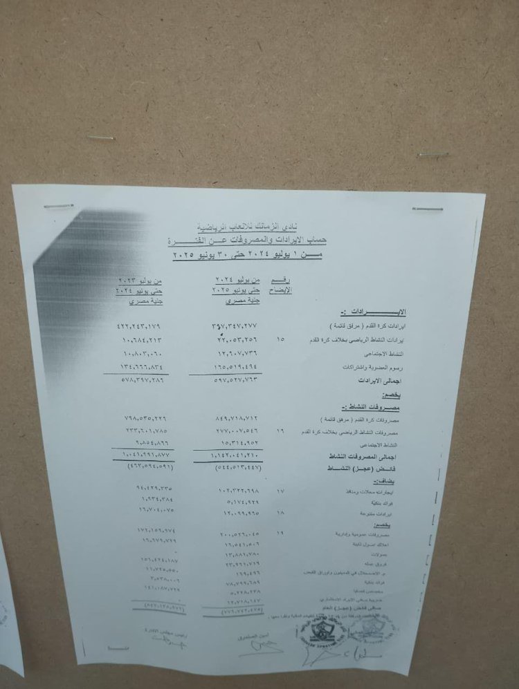 أعلن نادي الزمالك عن ميزانيته للعام المالي المنقضي من يوليو 2024 حتى يونيو 2025، والتي سيتم مناقشتها في الجمعية العمومية المقبلة المقرر لها يوم 9 ديسمبر الجاري.