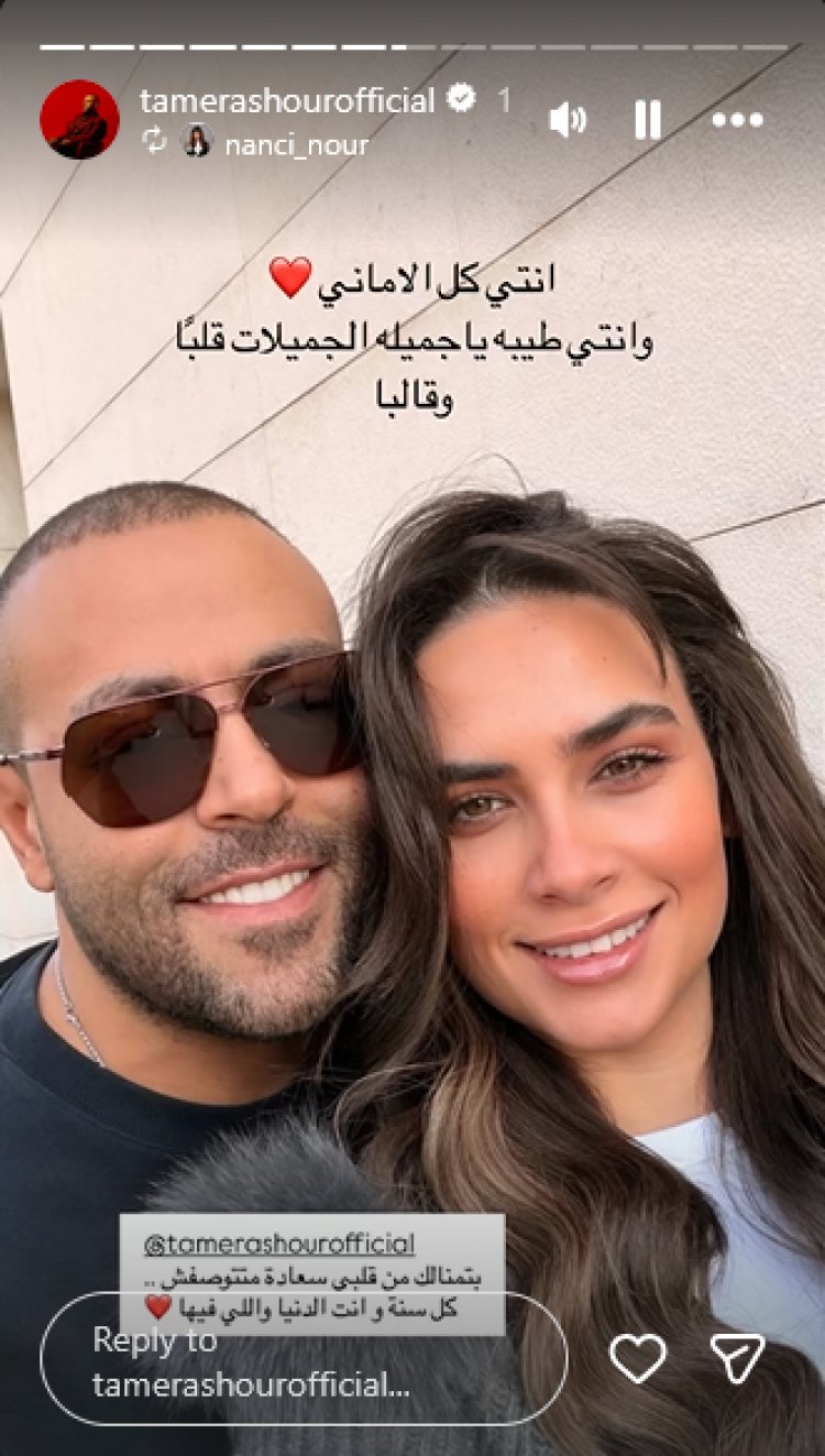 ولم تتوقف رسائل الحب بين الثنائي عند هذا الحد، حيث حرصت نانسي على تهنئة جديدة بمشاركة صورة تجمعهما معًا، وعلقت عليها: "بتمنالك من قلبي سعادة ماتتوصفش، كل سنة وأنت الدنيا واللي فيها".