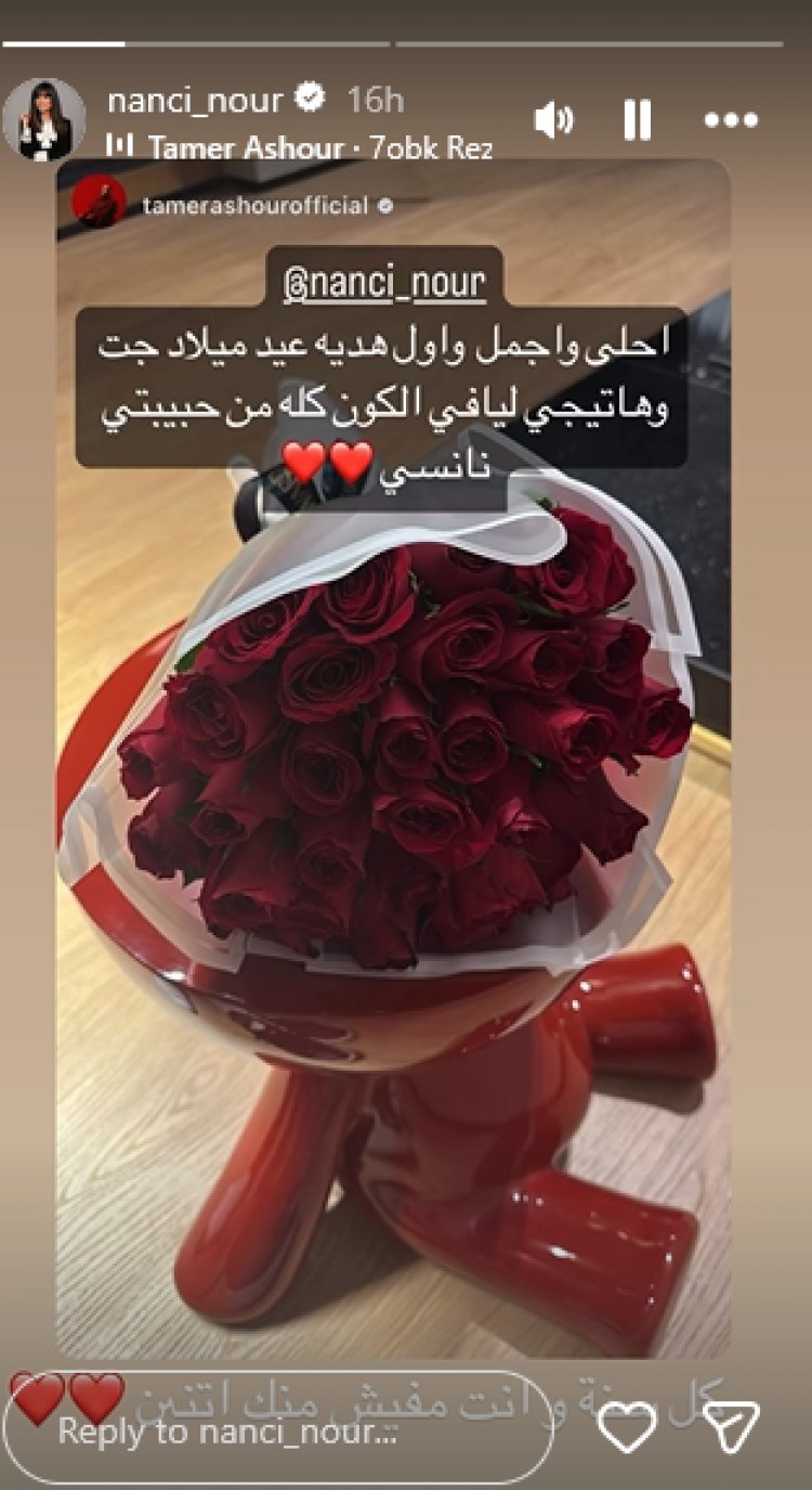 وردّت نانسي على هذه اللفتة الرومانسية بإعادة نشر تعليق زوجها على خاصية الاستوري، مصحوبًا بكلماتها: "كل سنة وأنت مفيش منك اتنين".