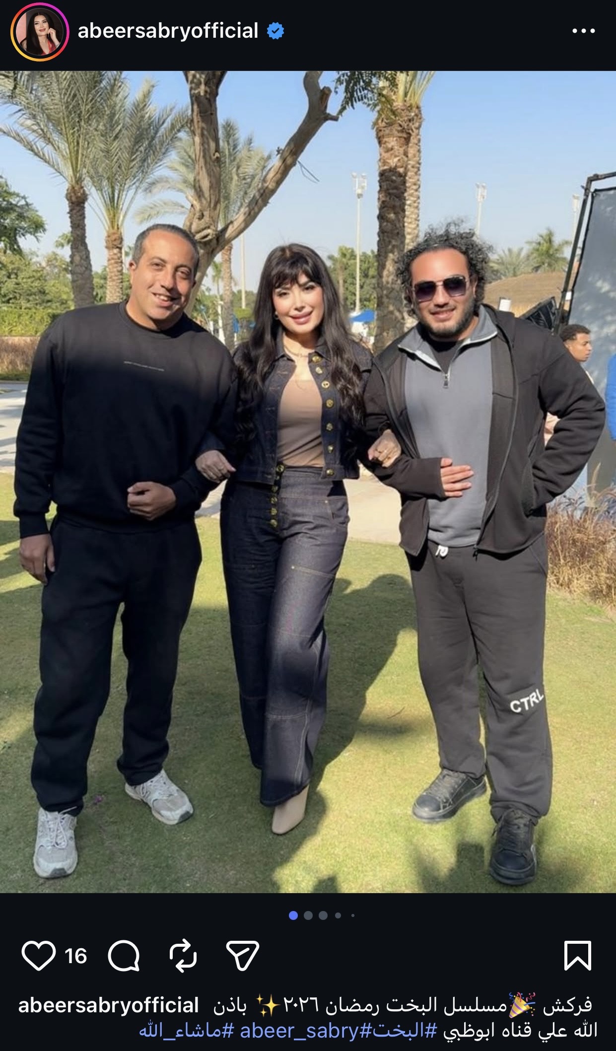 ونشرت عبير صورًا من كواليس العمل عبر حسابها الرسمي على موقع إنستجرام، وعلقت عليها قائلة: «فركش مسلسل البخت رمضان ٢٠٢٦ بإذن الله على قناة أبو ظبي».