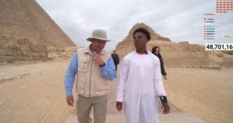 وظهر اليوتيوبر العالمي وهو يلتقط الصور التذكارية بجوار المعالم الأثرية، ويتحدث بحماس عن عظمة التاريخ المصري، مرتديًا قميص المنتخب الوطني في لفتة اعتبرها المتابعون رسالة تقدير واحترام لمصر، كما رفع العلم المصري خلال جولته، ما أضفى طابعًا احتفاليًا على الزيارة.
