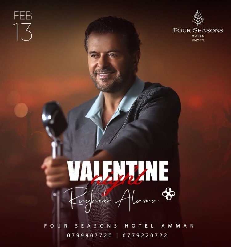 كما يحيي راغب علامة حفلًا غنائيًا آخر بمناسبة عيد الحب في أحد الفنادق الكبرى بالعاصمة الأردنية عمّان، يوم 13 فبراير المقبل، حيث من المنتظر أن يقدم باقة من أشهر أغانيه التي ارتبط بها جمهوره على مدار مشواره الفني.