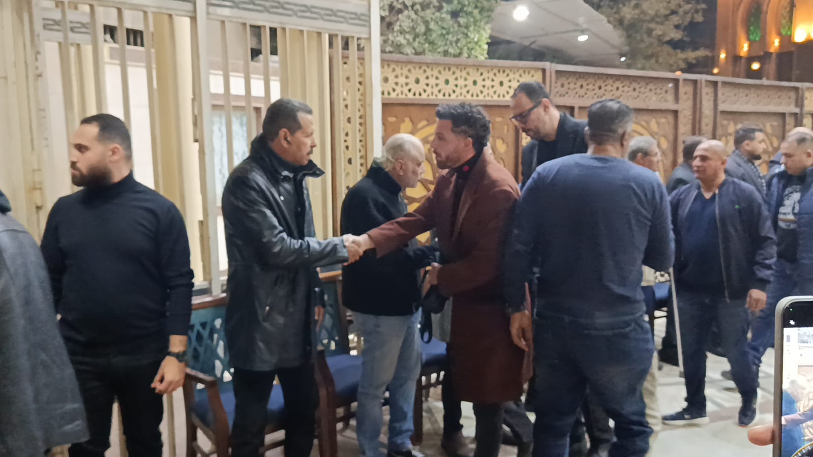 حرص الفنان محمود حجازي على حضور عزاء والدة الفنان نضال الشافعي، المقام حاليًا في مسجد الحامدية الشاذلية، ويعد هذا الظهور الأول له بعد الأزمات التي مر بها مع زوجته مؤخرًا.