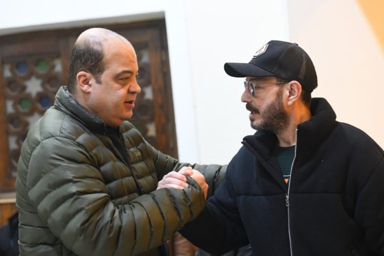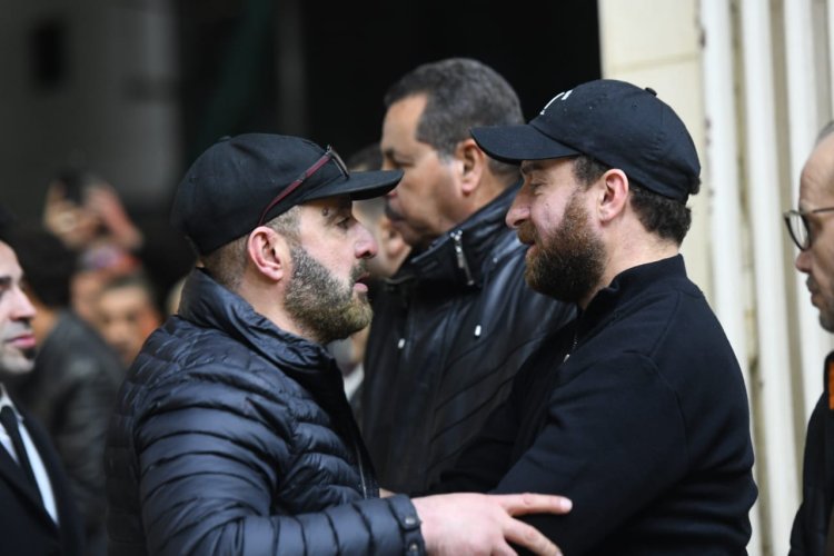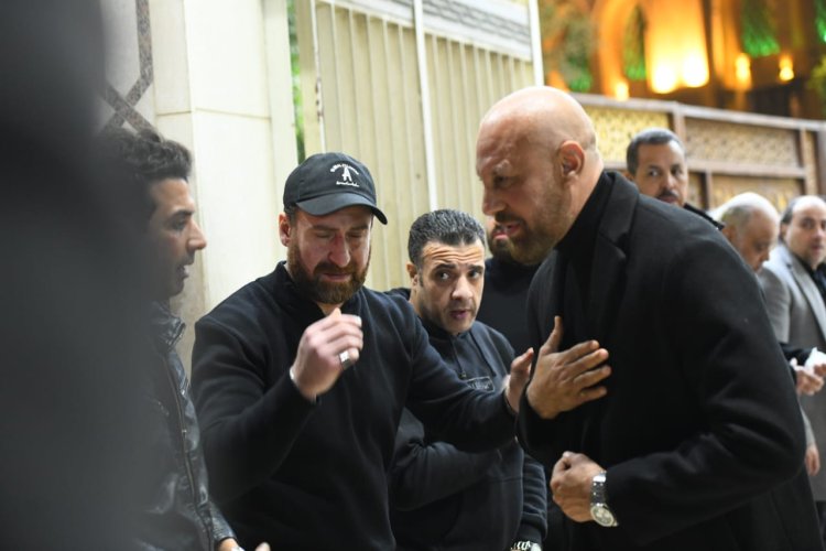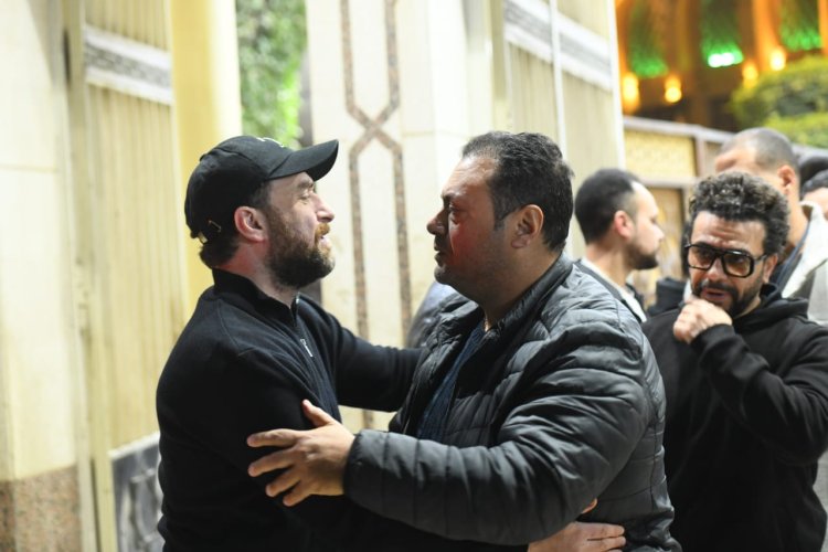 لحظات انهيار الفنان نضال الشافعي في عزاء والدته.. ونجوم الفن يساندونه