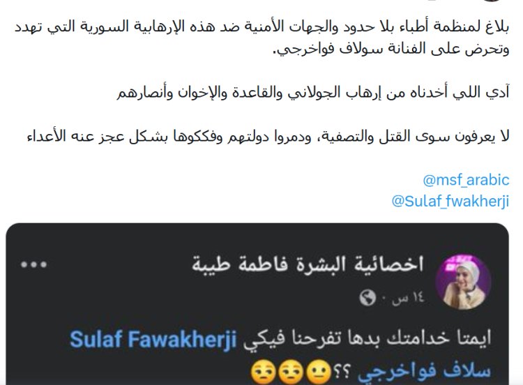 وفي هذا السياق، نشر الكاتب السياسي سامح عسكر تدوينة عبر حسابه على منصة إكس، طالب خلالها الجهات المعنية بسرعة التحرك لضبط ومحاسبة أصحاب تلك المنشورات، محذرًا من خطورتها، ومعتبرًا أنها تمثل تهديدًا صريحًا لحياة الفنانة سلاف فواخرجي.