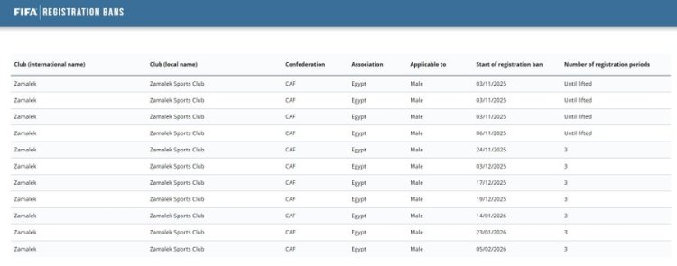 أوضح مصدر بنادي الزمالك سبب قرار الاتحاد الدولي لكرة القدم "فيفا" بإيقاف القيد الجديد لمدة 3 فترات متتالية، وذلك وفقًا لما جاء عبر الموقع الرسمي للاتحاد اليوم الخميس الموافق 5 فبراير .