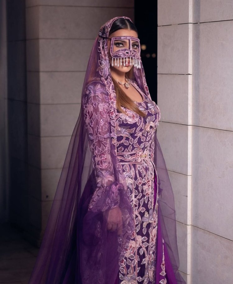التناغم اللوني: كسر اللون البنفسجي حدة التقاليد، ليمنح البرقع روحاً حيوية تناسب عام 2026.