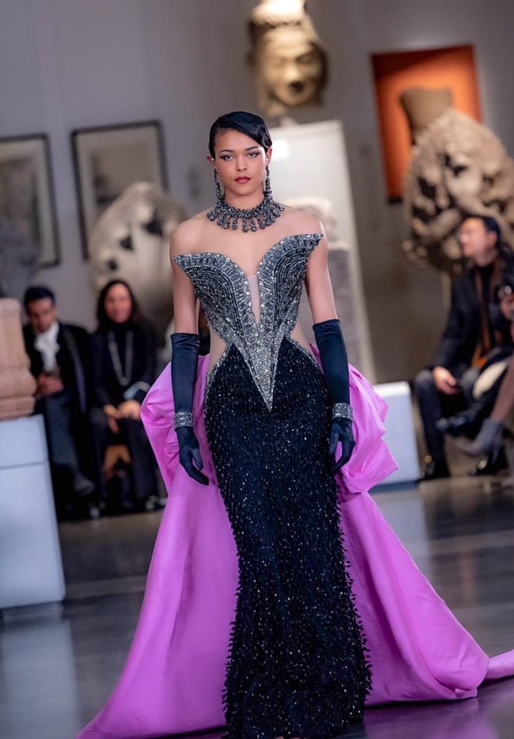 وأقيم "ديفيليه" البحيري باسبوع الموضة الفرنسي داخل متحف" جيومت " (Musée Guimet) العريق وهو المتحف الوطني للفنون الآسيوية في فرنسا.. وكان ضمن الحضور علياء الصيرفي حرم السفيرة المصري بفرنسا وعدد من زوجات السفراء العرب.