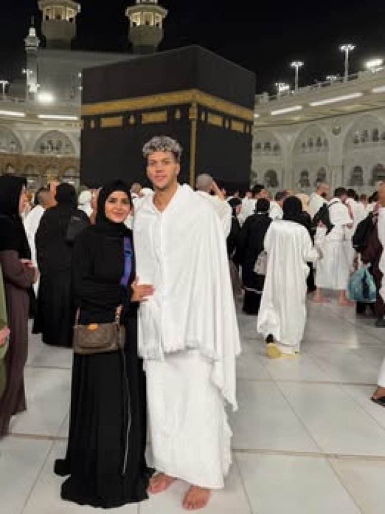 إمام عاشور يؤدي مناسك العمرة برفقة زوجته