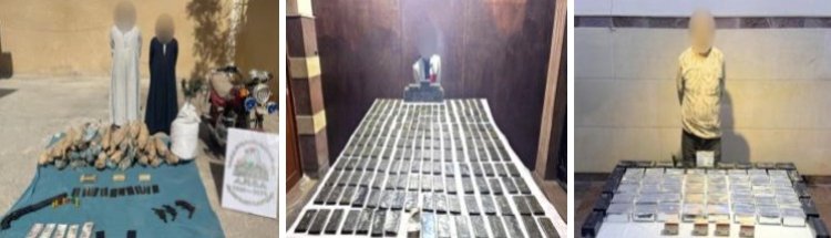 نجحت أجهزة الوزارة في توجيه ضربة موجعة لمهربي ومتاجري المواد المخدرة والأسلحة النارية غير المرخصة وقد أسفرت الحملات في محافظات (قنا، أسوان، أسيوط) عن مصرع 3 عناصر جنائية شديدة الخطورة، وضبط طناً من المخدرات و83 قطعة سلاح ب 93 مليون جنيه .