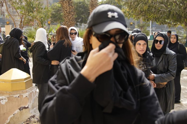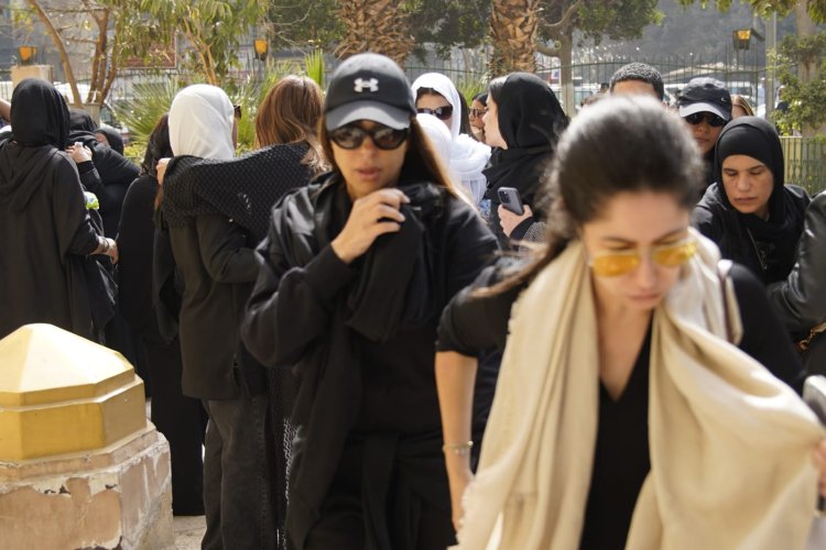انهيار الفنانة ريم مصطفى أثناء تشييع جثمان والدتها.. ويوسف الشريف أول الحاضرين