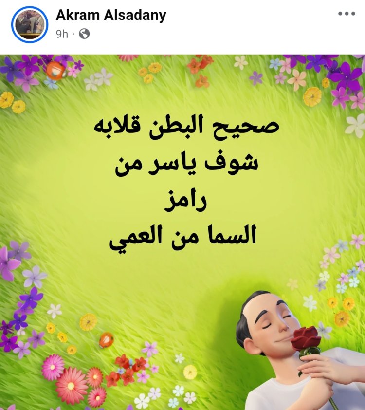 ونشر أكرم السعدني عبر حسابه على فيسبوك: «صحيح البطن قلابة.. شوف ياسر من رامز.. السما من العمى»، في إشارة إلى الفارق الكبير بين الشقيقين.