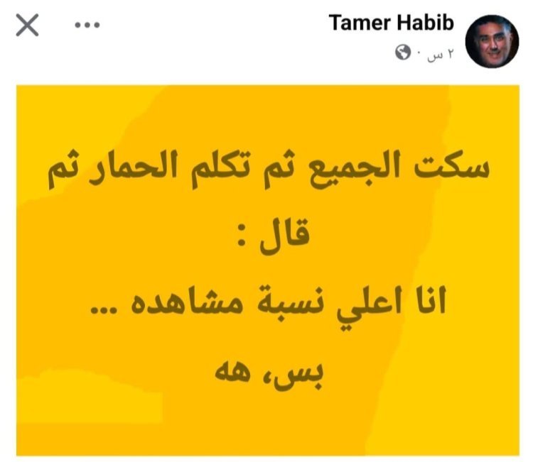 "سكت الجميع ثم تكلم الحمار ثم قال: أنا أعلى نسبة مشاهده.. بس هه".