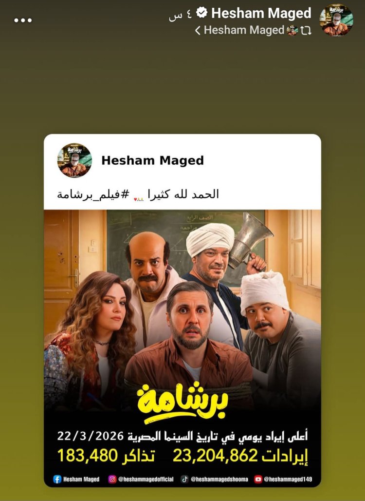 أعرب النجم هشام ماجد عن سعادته البالغة بالنجاح الجماهيري الضخم الذي حققه فيلمه الجديد "برشامة"، في أول أيام انطلاقه بدو العرض السينمائي ضمن سباق موسم عيد الفطر المبارك 2026.