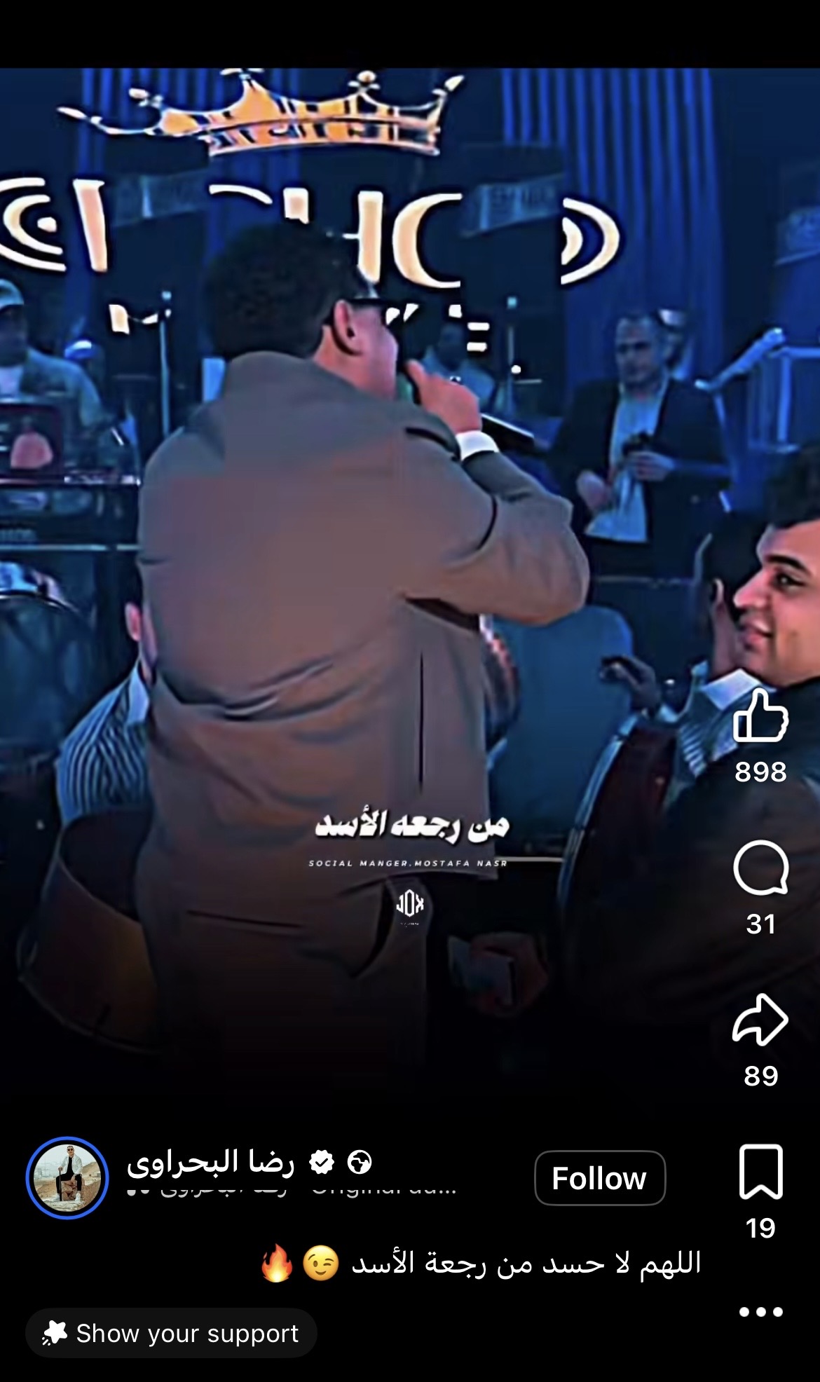 قال المطرب رضا البحراوي إنه قرر التراجع عن قرار اعتزال الغناء الذي اتخذه بعد وفاة والدته، وشارك جمهوره فرحته عبر حسابه على فيسبوك بمقطع فيديو من إحدى حفلاته، وعلق قائلاً: "اللهم لا حسد من رجعة الأسد".