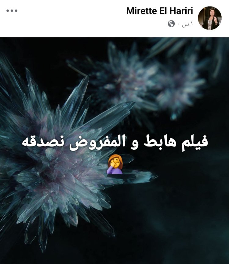 وعبر حسابها الشخصي على موقع "فيسبوك"، كتبت ميريت الحريري منشوراً مقتضباً قالت فيه: "فيلم هابط والمفروض نصدقه". ولم ترفق ميريت مع المنشور أي تفاصيل إضافية أو صور، كما لم تشر صراحةً إلى اسم العمل الذي تقصده، سواء كان فيلماً سينمائياً يعرض حالياً، أو عملاً درامياً، أو حتى واقعة معينة تصفها بـ "الفيلم".
